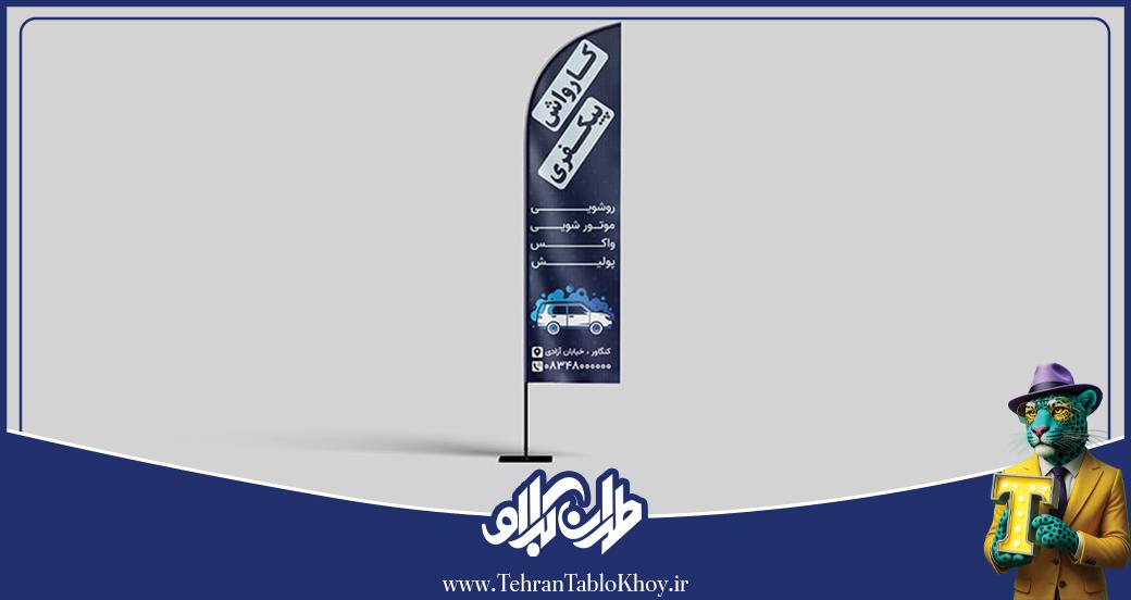 فرم هلالی یا قطره‌ای پرچم، زیبایی خاصی به محیط می‌دهد و متفاوت از تابلوهای معمول است.